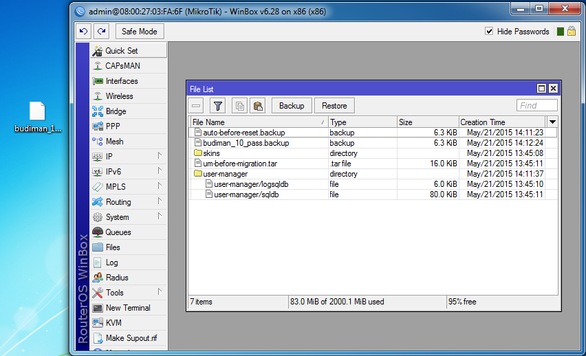 3. Drag filenya ke desktop, hapus file backup yang ada di routerboard